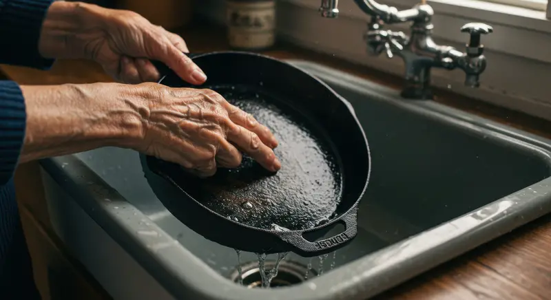 The real enemy of your cast iron isn’t soap – it’s moisture. Leaving your pan wet after washing is what actually causes problems like rust and deterioration. After you wash your skillet with soap and water, you need to dry it completely with a towel or paper towel right away. Don’t just leave it in the dish rack to air dry like you might with other pans. Cast iron is porous and will start developing rust spots surprisingly quickly if you leave it damp.